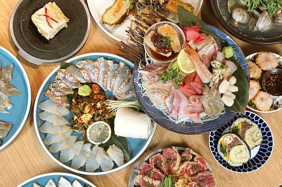 - 모듬 숙성회 세트 – 감태마끼와 조개술찜이 포함되어 있는 푸짐한 구성.